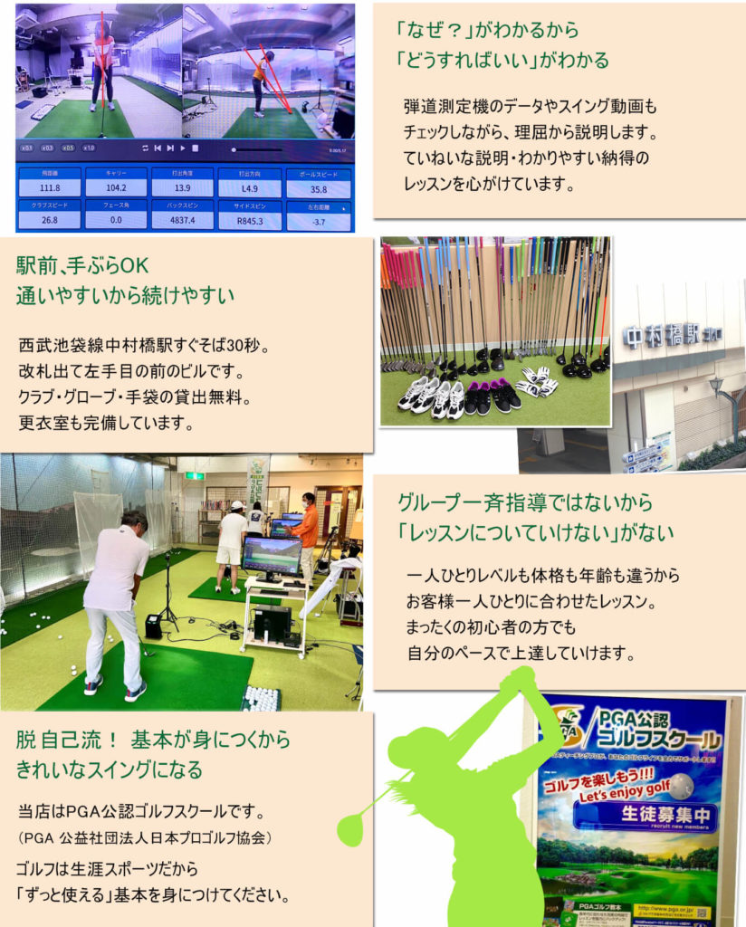 西武池袋線中村橋駅すぐそば(徒歩30秒!)のPGA(日本プロゴルフ協会)公認ゴルフスクールです。