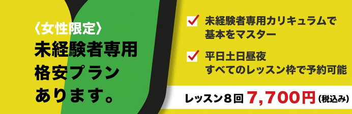 | 未経験者コース(女性限定) | 7,700円 | 未経験者専用レッスン8回受講 (別途打席料330円/回) |