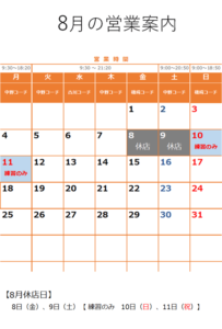 休業日 スクール・レッスンの営業 【休講日】 スクール休講日は、スクール、チケットのレッスン、都度レッスンの受講はできません。練習利用、体験 […]